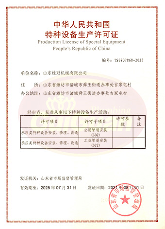 山東桂冠機(jī)械有限公司成立于2008年,注冊(cè)資金1600萬元,現(xiàn)有員工200多人,中高級(jí)技術(shù)管理人員45人,占地面積27000多平方米,生產(chǎn)車間面積12000多平方米。公司具備壓力容器產(chǎn)品的設(shè)計(jì)、制造(證書編號(hào)為:TS2237703-2025)、壓力管道安裝(證書編號(hào)為TS3837607-2025)全套壓力容器資質(zhì);通過國家ISO9001質(zhì)量管理體系認(rèn)證、美國ASME認(rèn)證、歐盟CE認(rèn)證;擁有建筑安裝機(jī)電工程專業(yè)承包叁級(jí)資質(zhì)、建筑工程施工總承包叁級(jí)資質(zhì)及對(duì)外貿(mào)易經(jīng)營出口權(quán)…